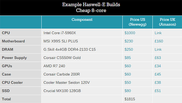 "Using the 8-core monster... does some financial damage," was Anandtech's succinct sum-up of the CPU's economics. $1,815 and up is the bare minimum price for a fully configured system, but that can easily stretch to $5,000 or more if you max out the RAM and graphics. The $1,000 price of the CPU doesn't help, but another issue is memory: DDR4 RAM is considerably more expensive than last-gen DDR3, running about $250 per 16GB. On the other hand, you will save a bit of money once it's up and running. Tick for tick, the new CPU is more efficient than last year's Extreme Edition 6-core model (provided you don't overclock), and the DDR4 RAM runs at a lower voltage and consumes less power as well. Still, you'd have to be a serious gamer to justify the mild performance bump for the not-so-mild leap in price over chips like the 4GHz Devil's Canyon model.